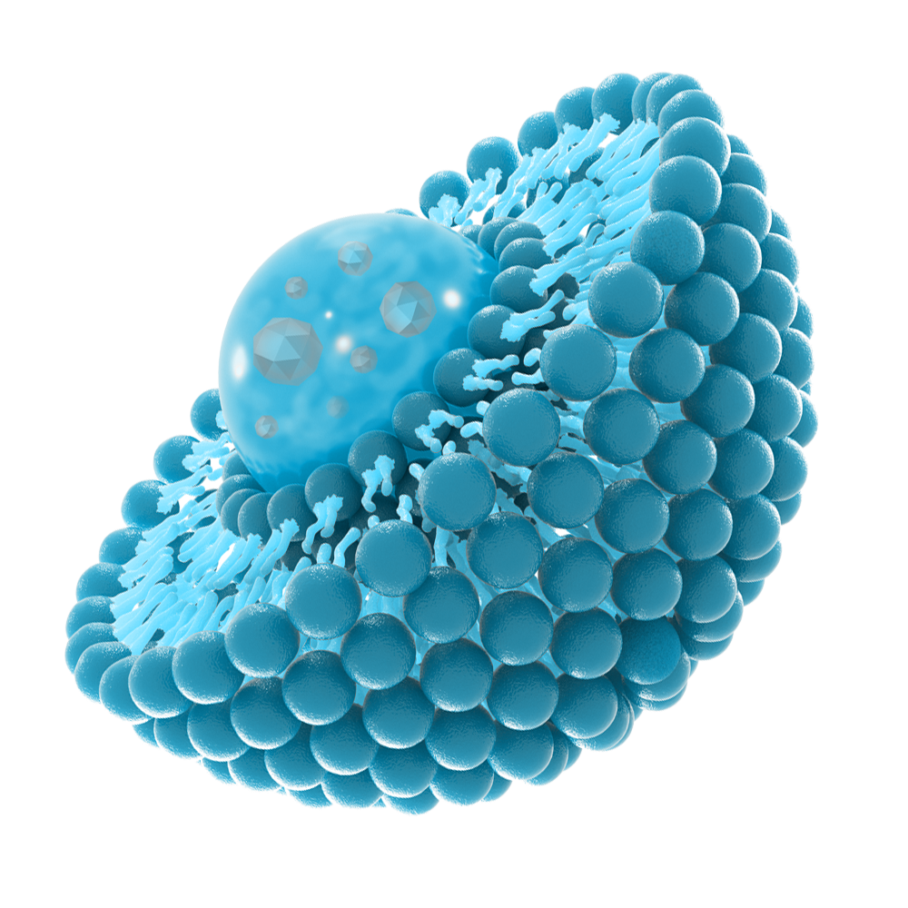 Liposomen zijn capsules die het actieve stofje omhullen en zo veilig naar de cellen brengen. Hierdoor blijft het stofje beschermd en kan het z'n werk goed doen. Zo wordt het dus makkelijker om voldoende van de juiste stofjes binnen te krijgen.