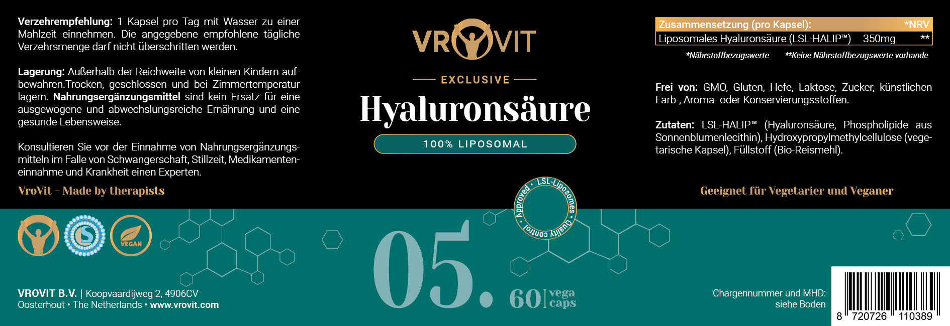 Wir haben über alle Vorteile von Hyaluronsäure gesprochen, aber die Einnahme von VROVIT Nr. 5 Liposomale Hyaluronsäure bietet noch weitere Vorteile: