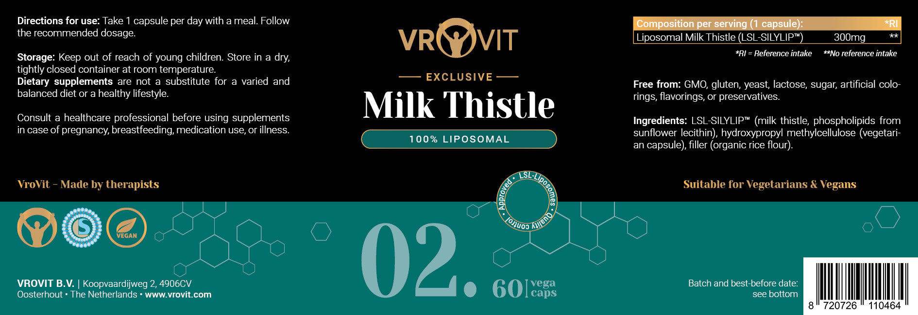 In general, bioactive compounds from plants have poor to moderate bioavailability. This is also true for regular Milk Thistle supplements. VROVIT No. 2 Liposomal Silymarin overcomes this limitation by encapsulating the active ingredient in liposomes.